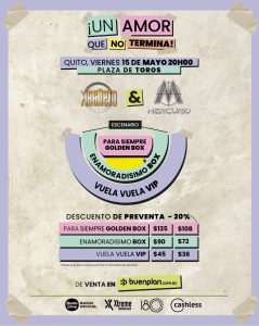 Tras siete años de ausencia, Magneto y Mercurio regresan a Ecuador para reencontrarse con su público y encender nuevamente la chispa de una generación que creció con sus canciones. En un concierto cargado de energía, coreografías y recuerdos inolvidables, ambas agrupaciones revivirán los grandes éxitos que marcaron el final de los años 80´s y toda la década de los 90´s, prometiendo una noche para cantar a todo pulmón, viajar en el tiempo y celebrar la música que definió una era.